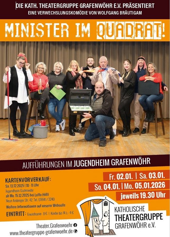 Das Wintertheater 2026 der Kath. Theatergruppe Grafenwöhr e.V. spielt in der großen Politik dieser Zeit. Die Theaterakteure bringen mit einem „Minister im Quadrat“ lustige Unterhaltung auf die Bretter, die die Welt bedeuten.