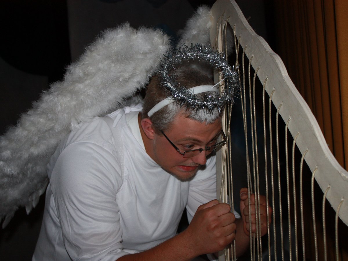 Aber auch die anderen Engel schleppen so einige Probleme mit sich herum. - Engelbert könnte fast ins Guinessbuch der Himmelsrekorde gelangen, da er unzählige Bruchlandungen hinlegt. Stellt sich die Frage: "Wieviele blaue Flecken hat Alexander Specht davongetragen?" Die meiste Arbeit hat wohl Petronella (Sabrina Rückschloß), die mit den Nähen von weißen Schlapperhemden oder mit Flügelbürsten beschäftigt ist. Die beiden jungen Engel Luciana und Engelberta (Jasmin und Nicole Neumann) dagegen interessieren sich eher für das Wolkenhupfen oder eine Weißbiervermehrung, sprich "Kanaa-Party"