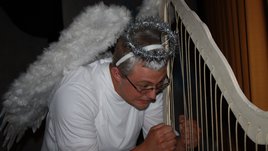 Die Wäsche ist auf einen Schlag erledigt; zumindest für Benedikta, als sie oben im Himmel damit ankommt. Dass sie aber gleich wieder auf Pankratius, ihren Ehemann trifft, dessen Machodrüsen nicht entfernt wurden; damit musste der (B)engelzugang erst mal fertig werden. Außer ihr (Christine Wiesend) trafen die Besucher des Theaterstücks: "Wo geht's denn da zum Himmel?" am Samstag und Sonntag Abend noch auf eine Menge anderer "himmlischen" Wesen mit den unterschiedlichsten Liezen. - Gabrielus, der Erleuchtete (Florian Danninger), der zusammen mit Felicita (Marina Sollacher) Zucht und Ordnung in die himmlischen Gefilde bringen will, stellt immer wieder machtlos fest: "Die Bayern machen mi richtig ferti!" Als dann auch noch Pankratius (Matthias Hörl) mit seiner Tuba anmarschiert, ist die Ruhe dahin.